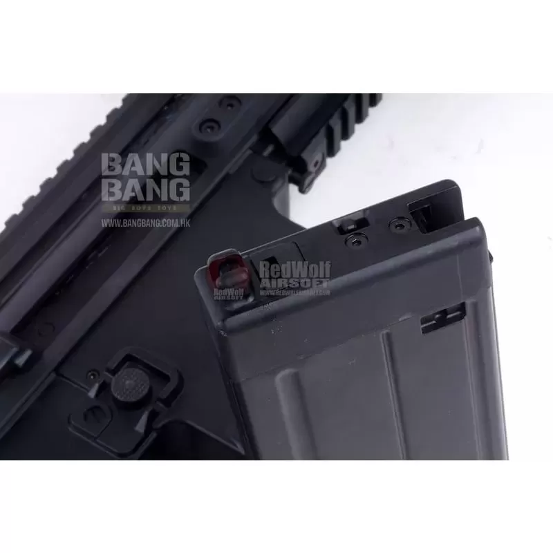 prviously in two tone tan color now in the all new black colour scheme, the upper receiver is made in metal with a anodized finish and paired with a weight lightening polymer lower receiver. Inside is a gas blowback system that gives a better kick than the other SCAR-H GBBs out there in the market. .