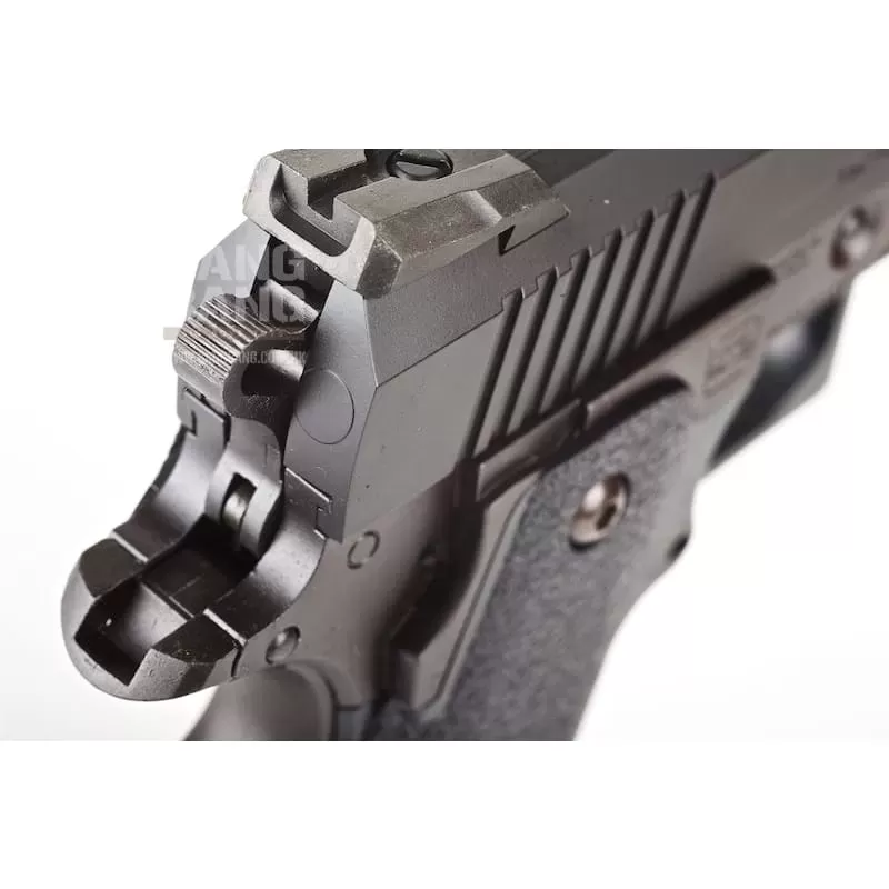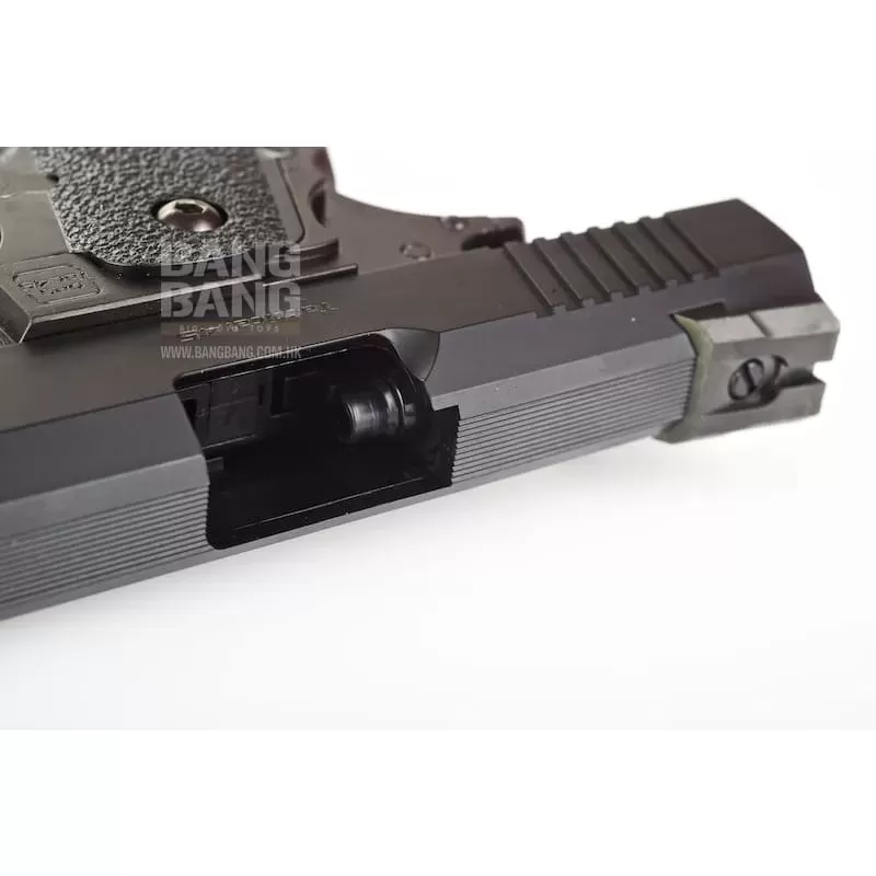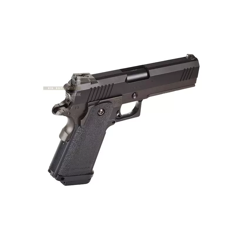 The Hi-Capa 4.3 is very an extremely capable and accurate pistol that makes it one of the most popular in Airsoft. It is hands-down the most reliable gas blowback pistol of all time - and there is good reason for that! It's no wonder that so many custom guns are based on the Hi Capa platform and most competition shooters will not shoot anything else. Metal parts included : recoil spring guide rod, nickel plated hammer, adjustable rear sight, front sight, magazine catch, magazine, and frame with an ABS grip. The barrel is also handsomely nickel plated. Good for 280fps when using Green Gas, but many upgrades are available for this pistol that you can reach higher power with some modifications! Gun is well balanced and hefty thanks to the metal frame. Extremely smooth slide cycling action with strong recoil and a pleasant assortment of clicks and clacks when the slide is pulled back makes this gun a lot of fun to shoot. There is an under rail for accessories like flashlights and lasers!