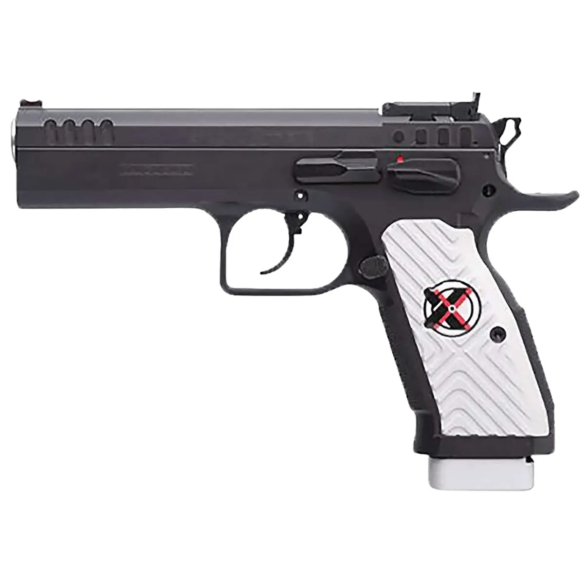 Tanfoglio IFG TFSTOCK2X9 Stock II Xtreme 9mm Luger 16+1/17+1, 4.44 Black Polygonal Rifled Barrel, Black Serrated Slide, Black Steel Frame w/Beavertail, White Polymer Grip - CLB Guns