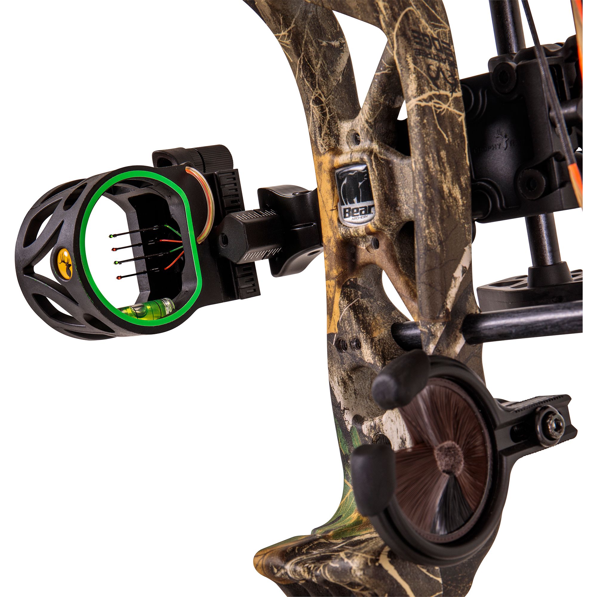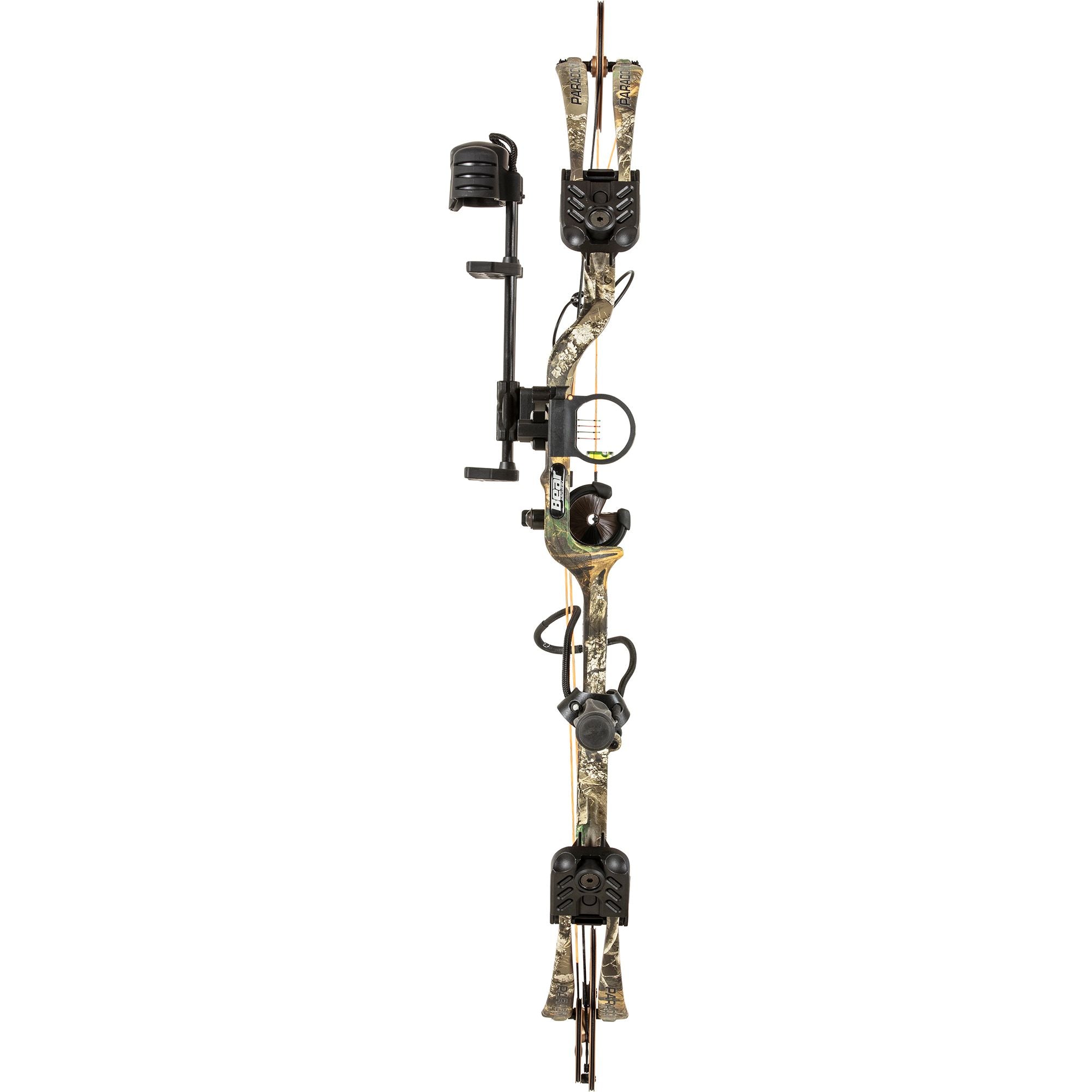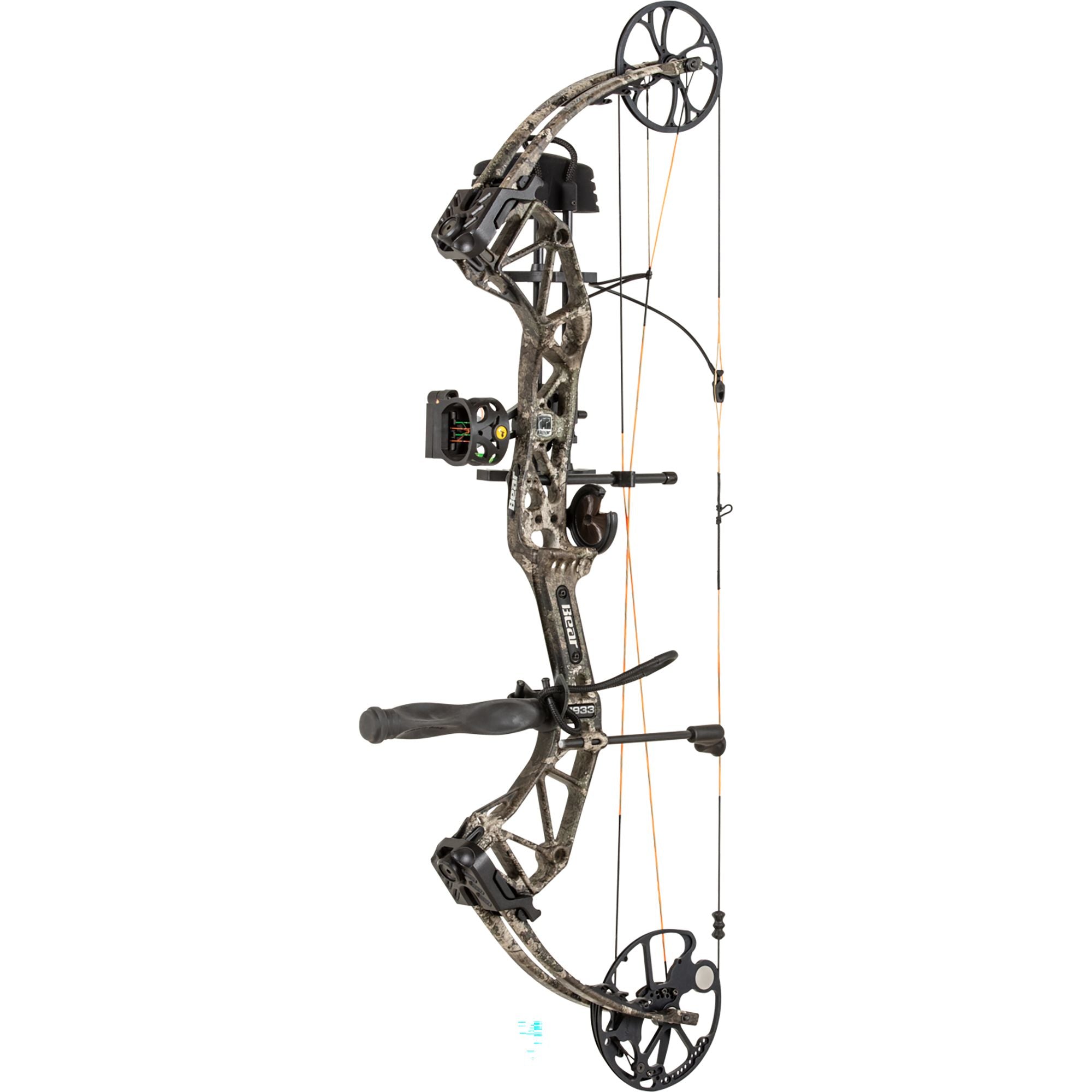 Comes Ready to Hunt (RTH) equipped with Trophy Ridge accessories, which include: a 4-pin sight, V-Biscuit, Stabilizer, 5-arrow quiver, stabilizer, wrist sling, D-loop, and a no tie peep sight.