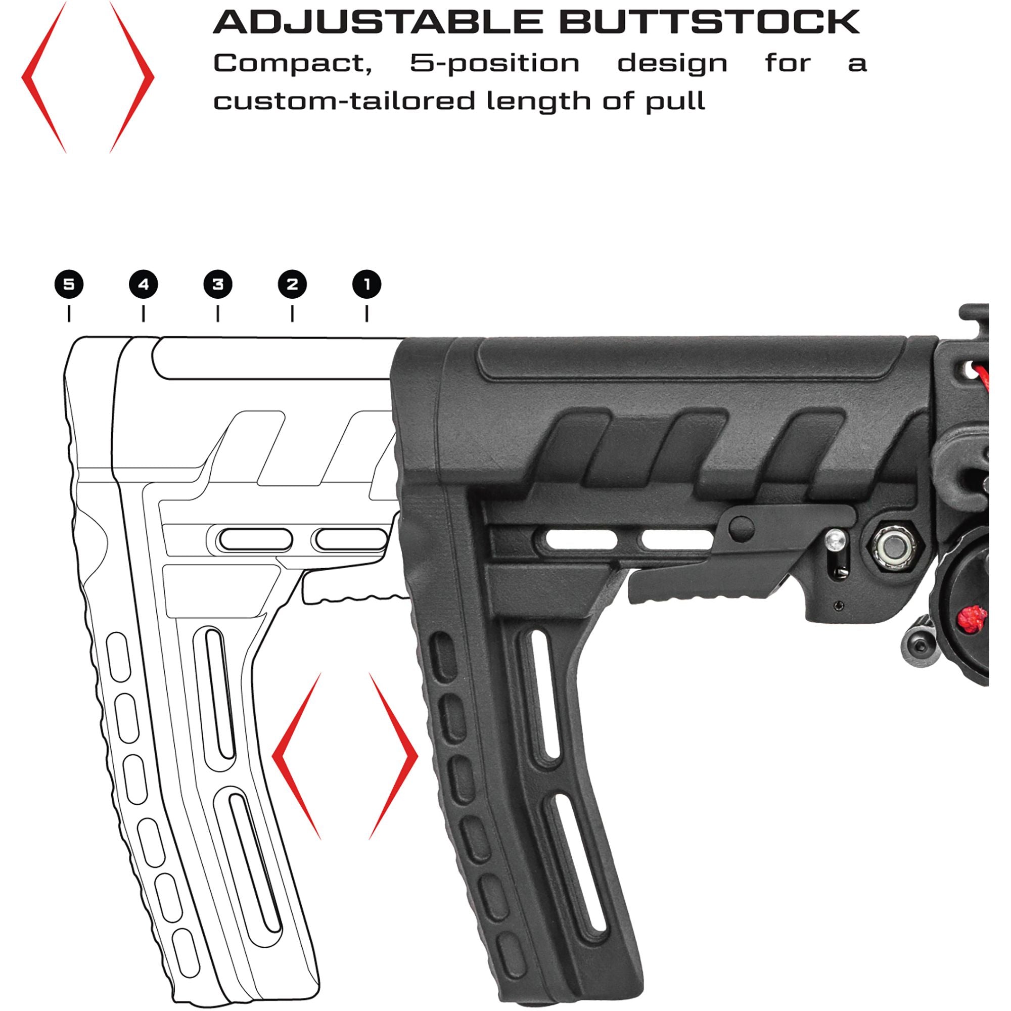 • Adjustable Buttstock: Compact, multi position design for a custom tailored length of pull
