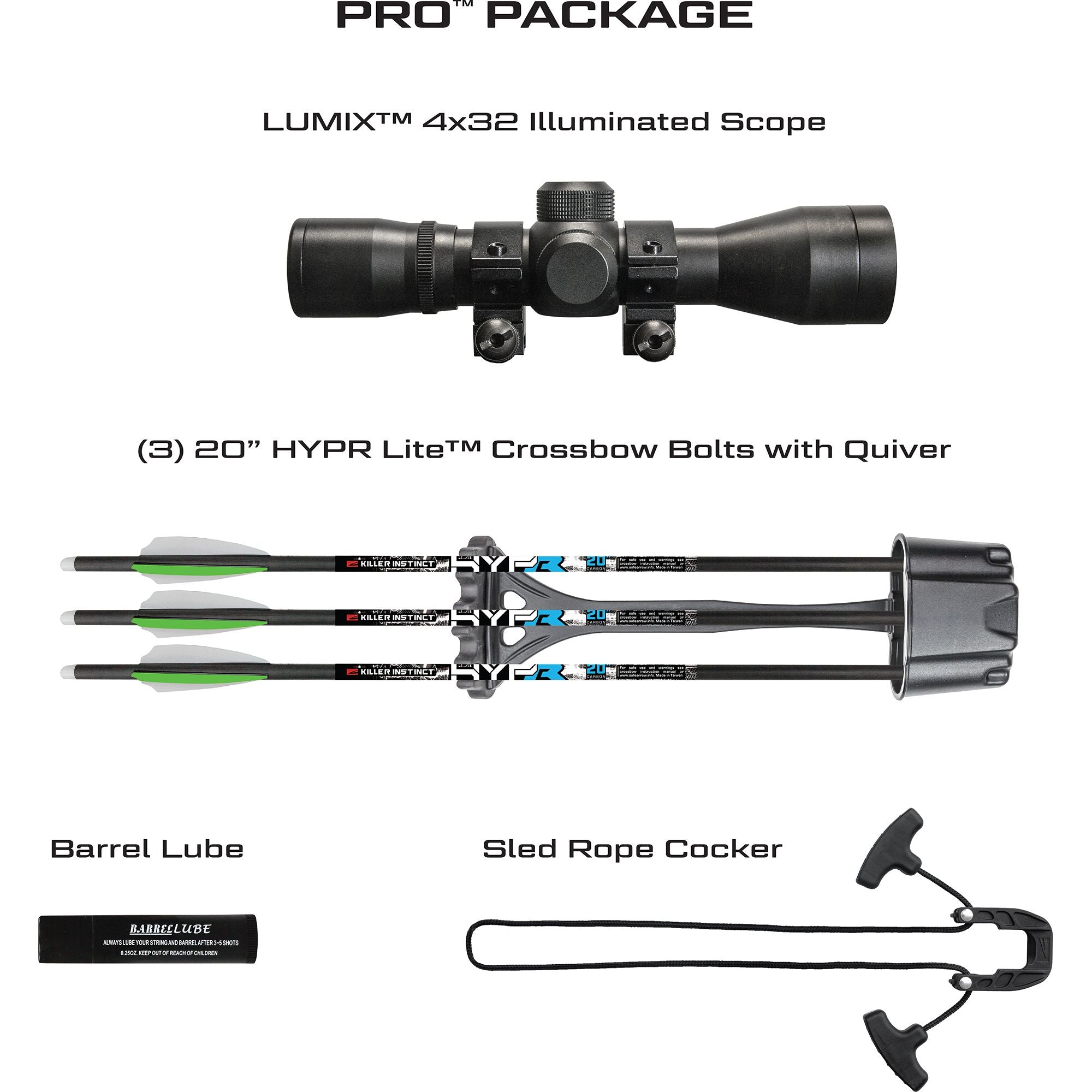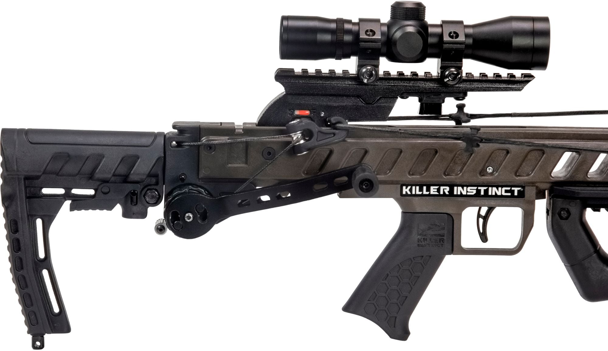 The FUEL 415 Crossbow Kit from Killer Instinct delivers the convenience of a built-in RDC Crank making it easy to cock your crossbow with very little effort. Featuring plenty of performance, premium crossbow bolts and a lighted 4x32 scope, The Fuel has everything you need to get started.