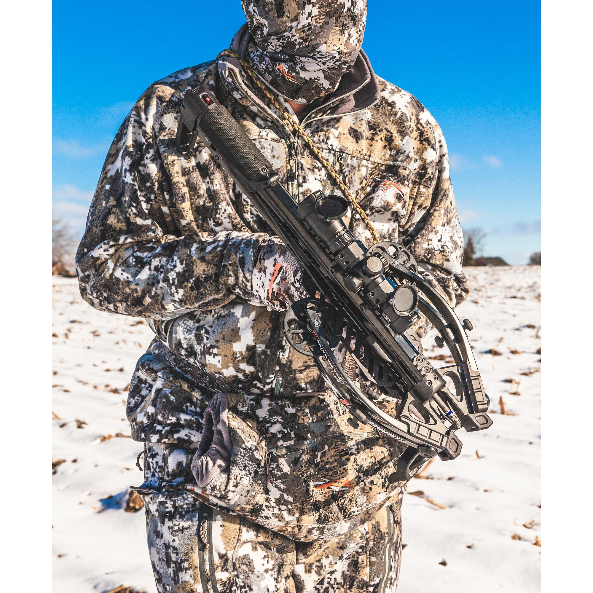 ELITE Crossbow Package includes: LUMIX SPEED RING 1.5-5 x 32 IR-E Scope, Compact Silent Crank, Quik-DrawRope Cocker, Quiver, (3)20-inch HYPRBolts (390Grains) with Field Tips, Stick of Rail Lube