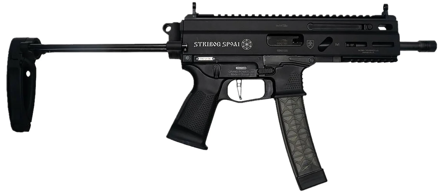 Grand Power 850003223131 SP9A1 Stribog 9mm Luger 30+1 8 Black Threaded Barrel, M-LOK Handguard, Black Aluminum Picatinny Rail Receiver, Black PDW Tailhook Brace, Black Polymer Grip, Thread Protector - CLB Guns