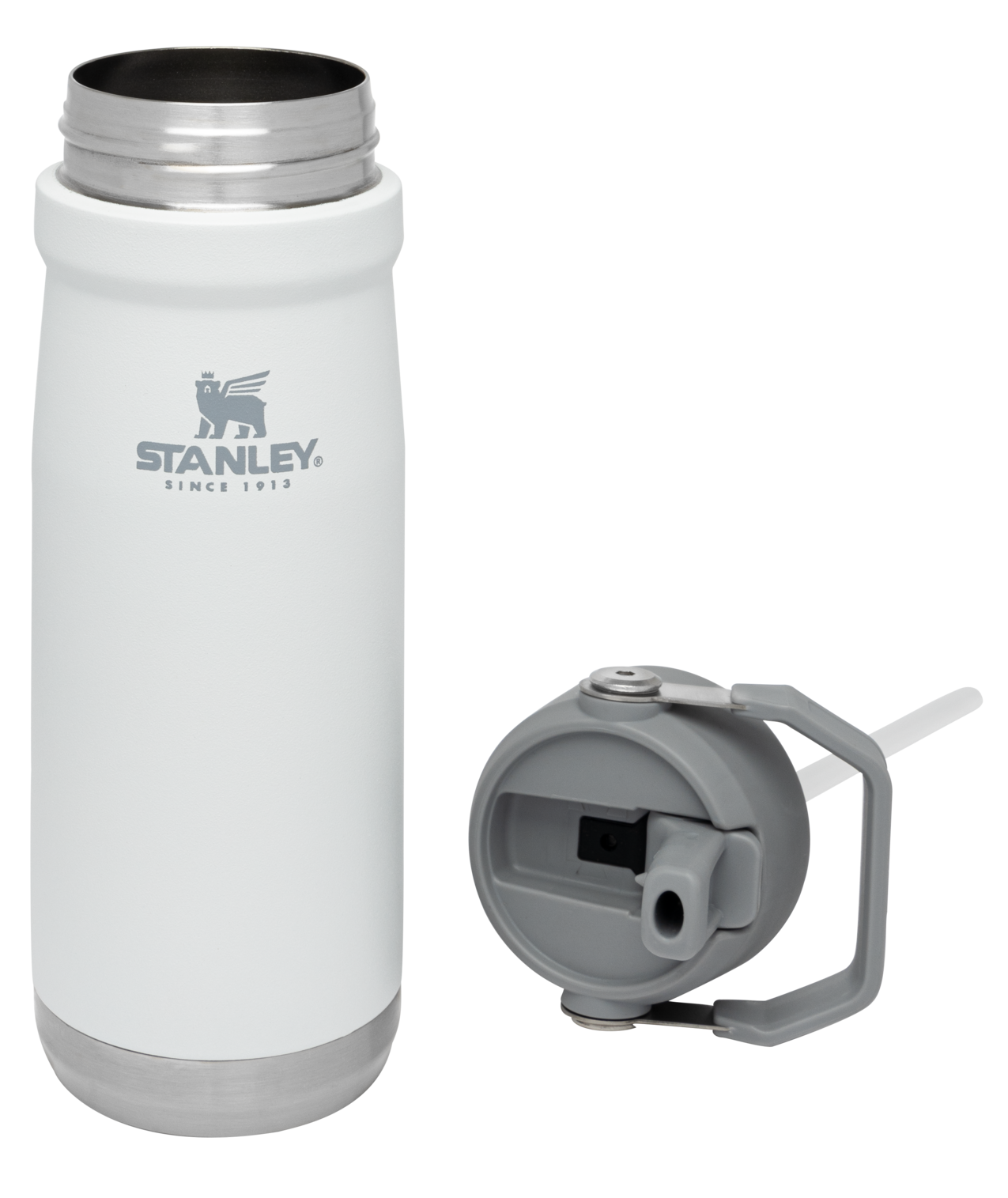 Maximum hydration with major style. This water bottle is designed to keep up with all your activities. It features a built-in straw that flips up for a quick drink, then snaps tight to stay fully leakproof (even when tossed in your bag). The ergonomic shape and rotating handle make it easy to hold while on the go. And best yet, Stanley’s double-wall vacuum insulation keeps everything ice cold all day.