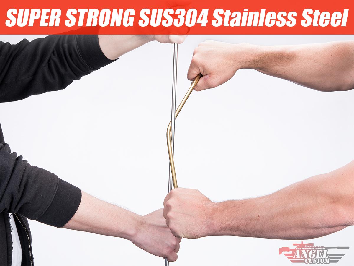 After considerable testing and R&D, SUS304 stainless steel was chosen for its qualities that it gives to the application of barrel manufacturing. Despite its higher cost and manufacturing complexity, SUS304 stainless steel provides a degree of hardness, durability and resilience to ensure the barrel retains its consistency and accuracy even after tens of thousands of rounds. Other qualities of SUS304 stainless steel is that it has natural scuff, corrosion and weather resistant qualities making it easier to maintain for years of reliability. Each barrel is crafted using precision machinery; a high polish and precision crowning provide peak performance.