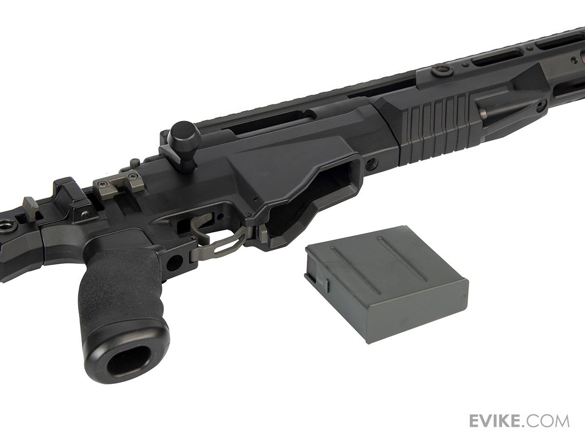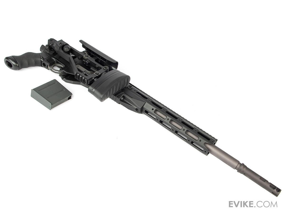 The ARES M40A6 in true-to-life Airsoft recreation of the real thing. It features the same modular rail system, modular adjustable folding stock, and improved ergonomics. The rifle sports a full length 20mm Picatinny upper rail which is ideal for all kinds of optics. Internally the rifle features a high-power spring system that makes this a formidable rifle choice on any field of play.