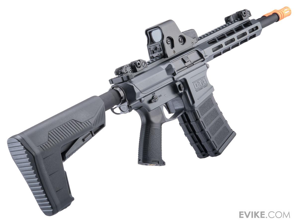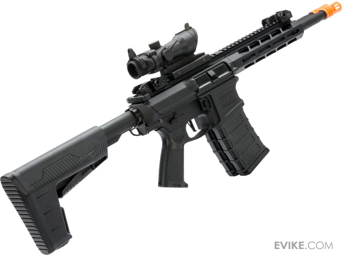 This rad package comes wrapped in Classic Army's durable metal alloy receiver, and features a unique M-LOK handguard at the front to mount as many tactical accessories as you can throw at it. Other accouterments include an adjustable stock, flip-up front and rear sights, and a built-in sling attachment point at the back of the receiver.