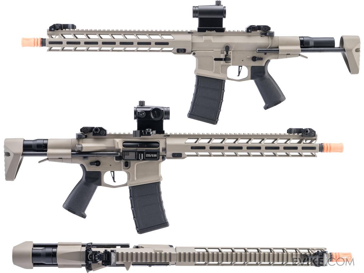 Internally, the gun has a 9mm bearing bushing gearbox, a brand new Electronic Control System "ECS", 6.03mm tightbore barrel, and a TRUE quick change spring system. The ECS not only protects your trigger contacts, but also has a trigger programmable 3 or 5 round burst fire function. This gun is lipo-ready right out of the box. It will shoot 375-400 fps using 0.20g BBs and 900-1000 rpm using a 7.4V battery. It has a true quick change spring system that you can access without having to take out the gear box, so that you can quickly and easily upgrade or downgrade your spring to change the power level.