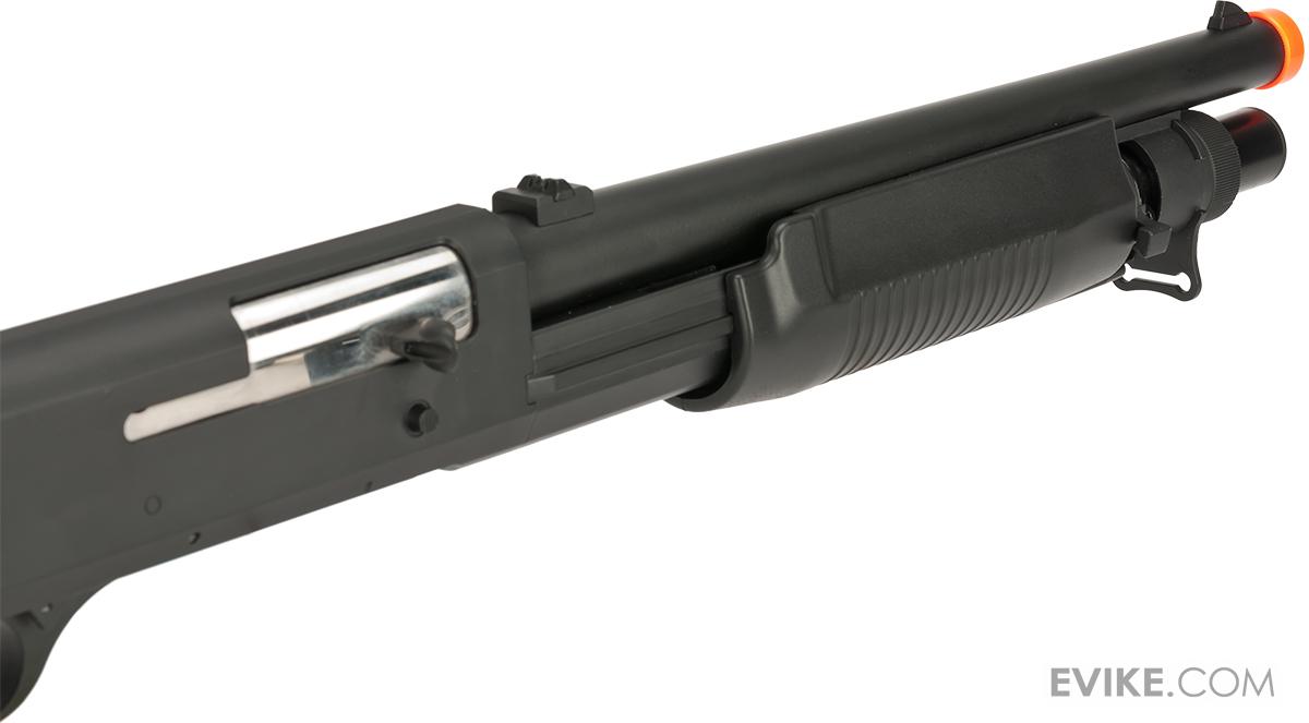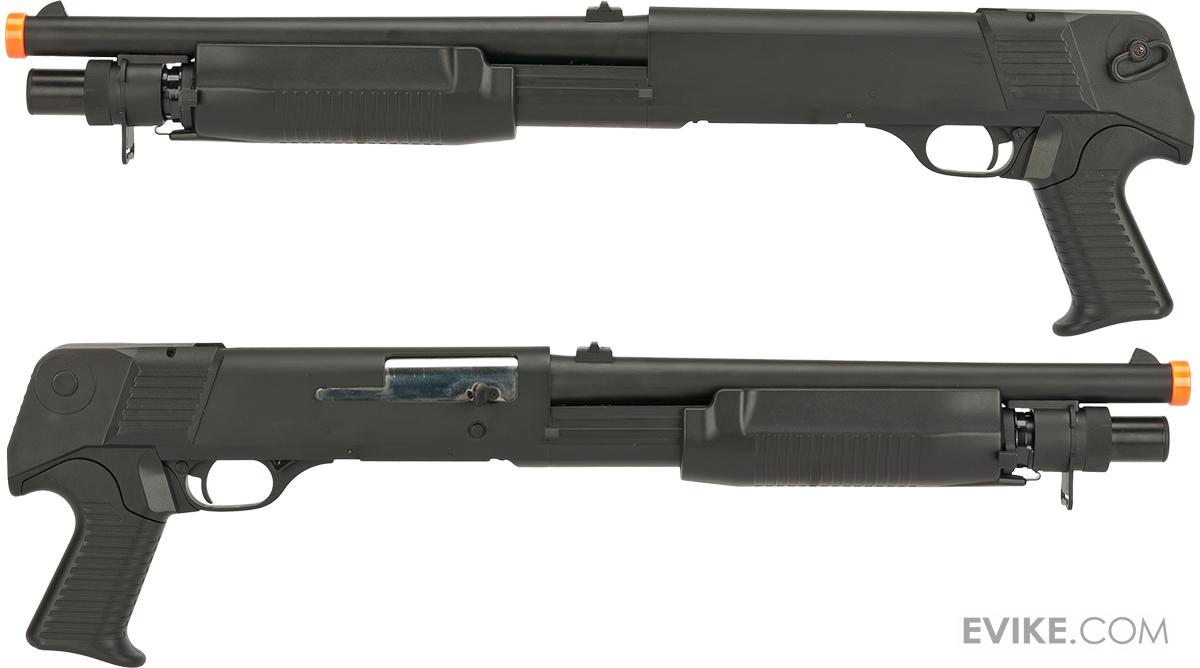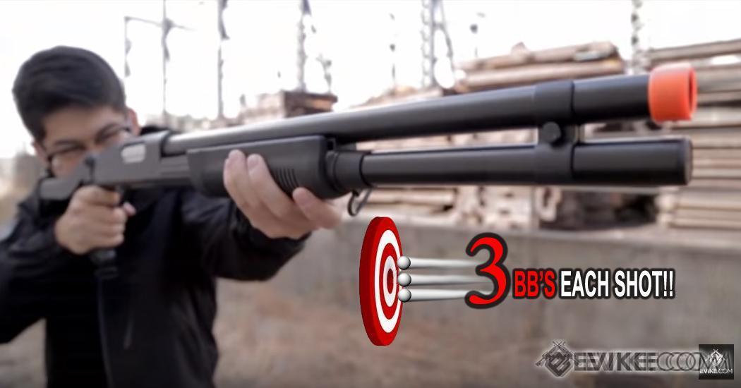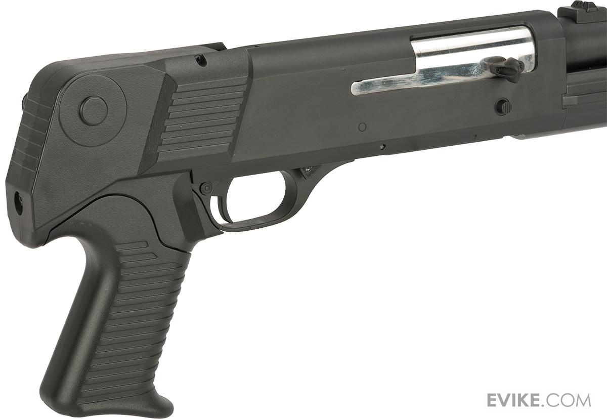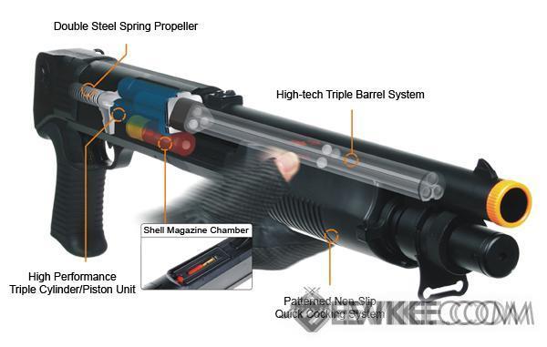 System: Realistic Pump Action / 3 Round Burst. No gas or battery required.
