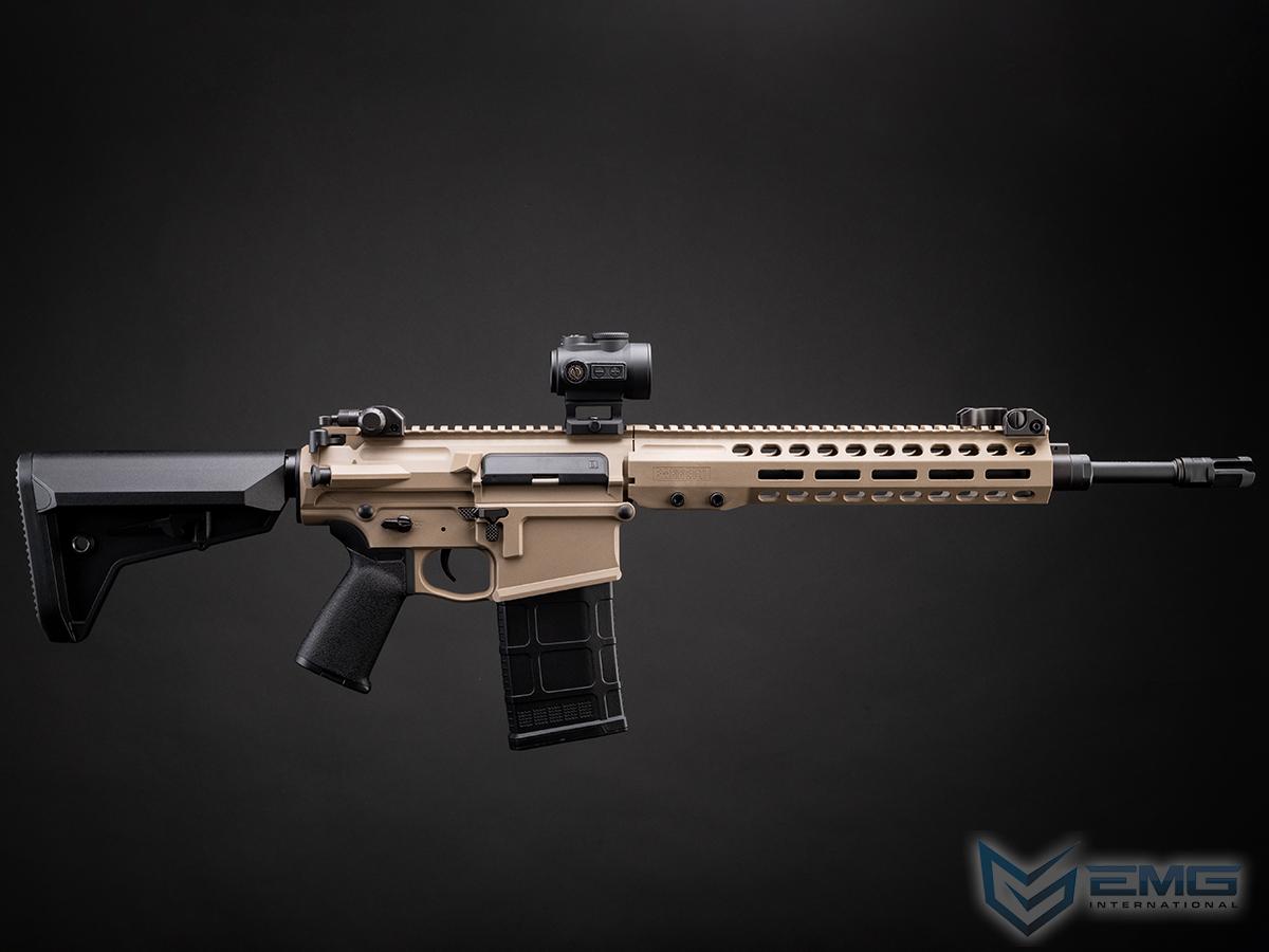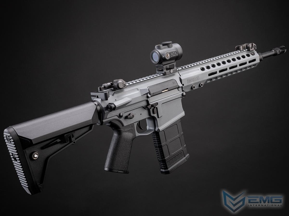 The EMG Barrett REC10 is an AR-10 pattern rifle sporting fully licensed Barrett trademarks, enhanced ergonomics and upgraded internal components. It features the CYMA Platinum gearbox with 8mm high performance bearings and complemented by an integrated enhanced MOSFET system offering faster trigger response and electronic protection. Pre-installed in the REC10 is a high-torque motor for quick, minimal lag during high-tempo gameplay. Additionally, the upgraded rotary hop-up ensures consistent accuracy. The REC10 rifle excels in delivering consistent power and precision over extended distances at an affordable price.