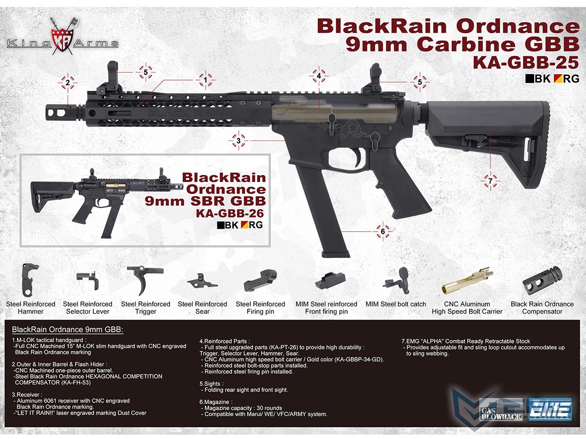 EMG Black Rain Ordnance BRO 9mm Gas Blowback Airsoft Rifle (Model: SBR / Red / Gun Only)