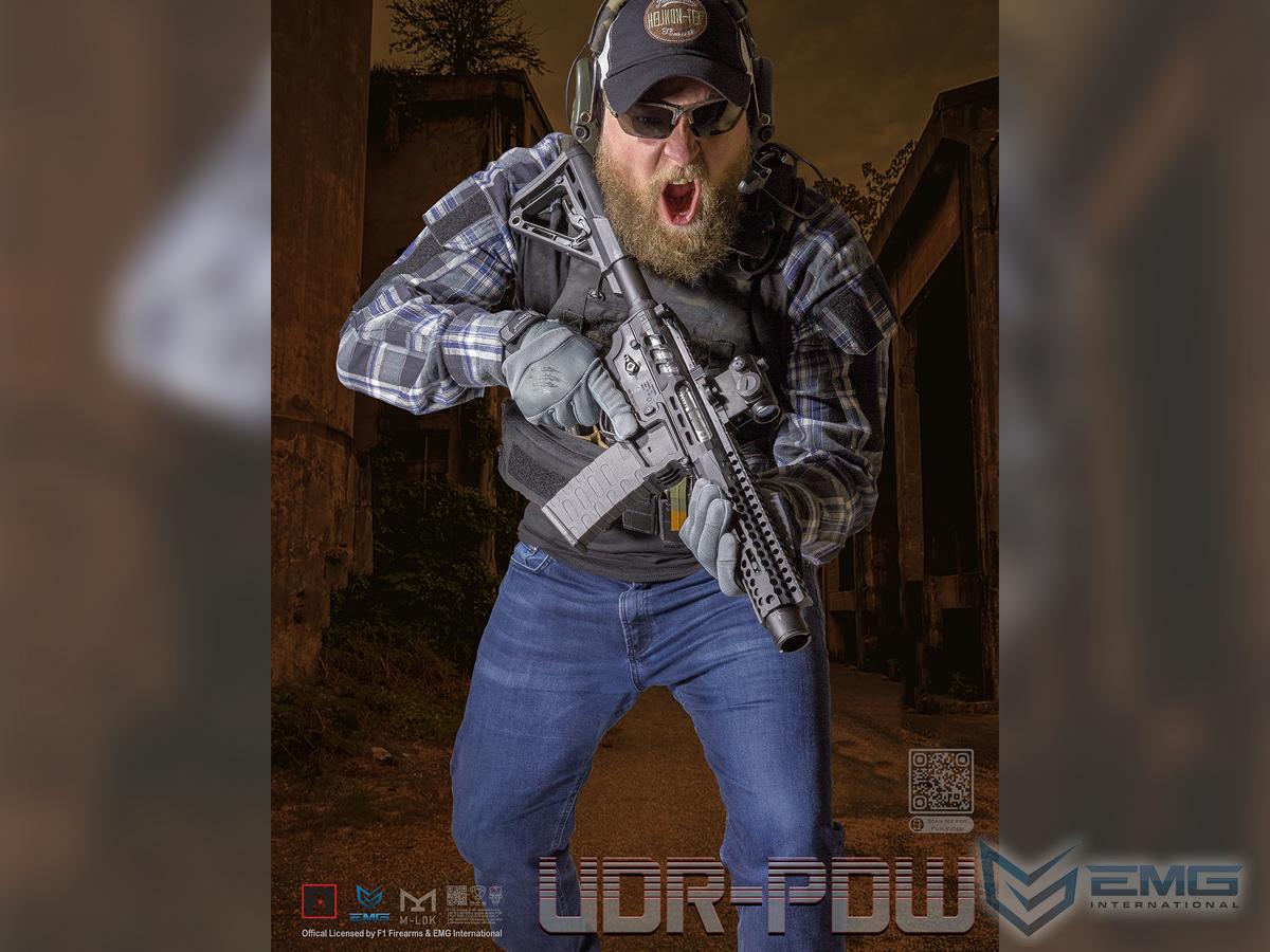 The UDR PDW is a special rifle in the real shooting world engineered and spec'd out to perfection by the elite engineers at F-1 Firearms. Fully licensed featuring authentic F1 engravings, logos, and trademarks, this EMG airsoft parallel training rifle is a stunning recreation of the real firearm this was based on.