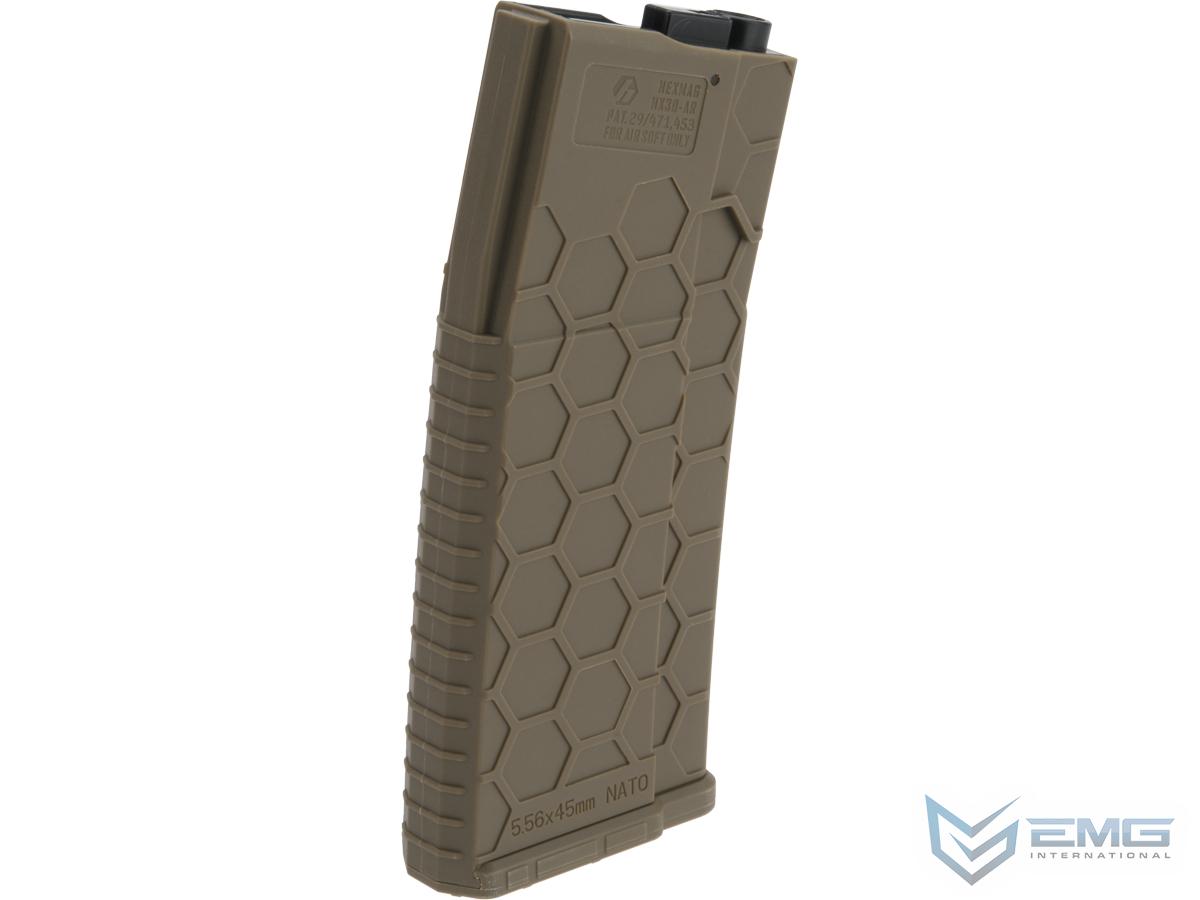 Hexmag Airsoft magazines are constructed to the standard of real AR mags. These heavy duty polymer magazines are incredibly rugged while remaining light weight and easy to carry. The unique hexagonal surface pattern gives the magazines greatly improved grip while at the same time giving it a sleek look. The hexagonal patterns can be filled in with paint to customize the magazine to your preference or to differentiate your magazines from a teammates; additionally the hexagons can be filled in with grip tape to make them no slip in any situation.