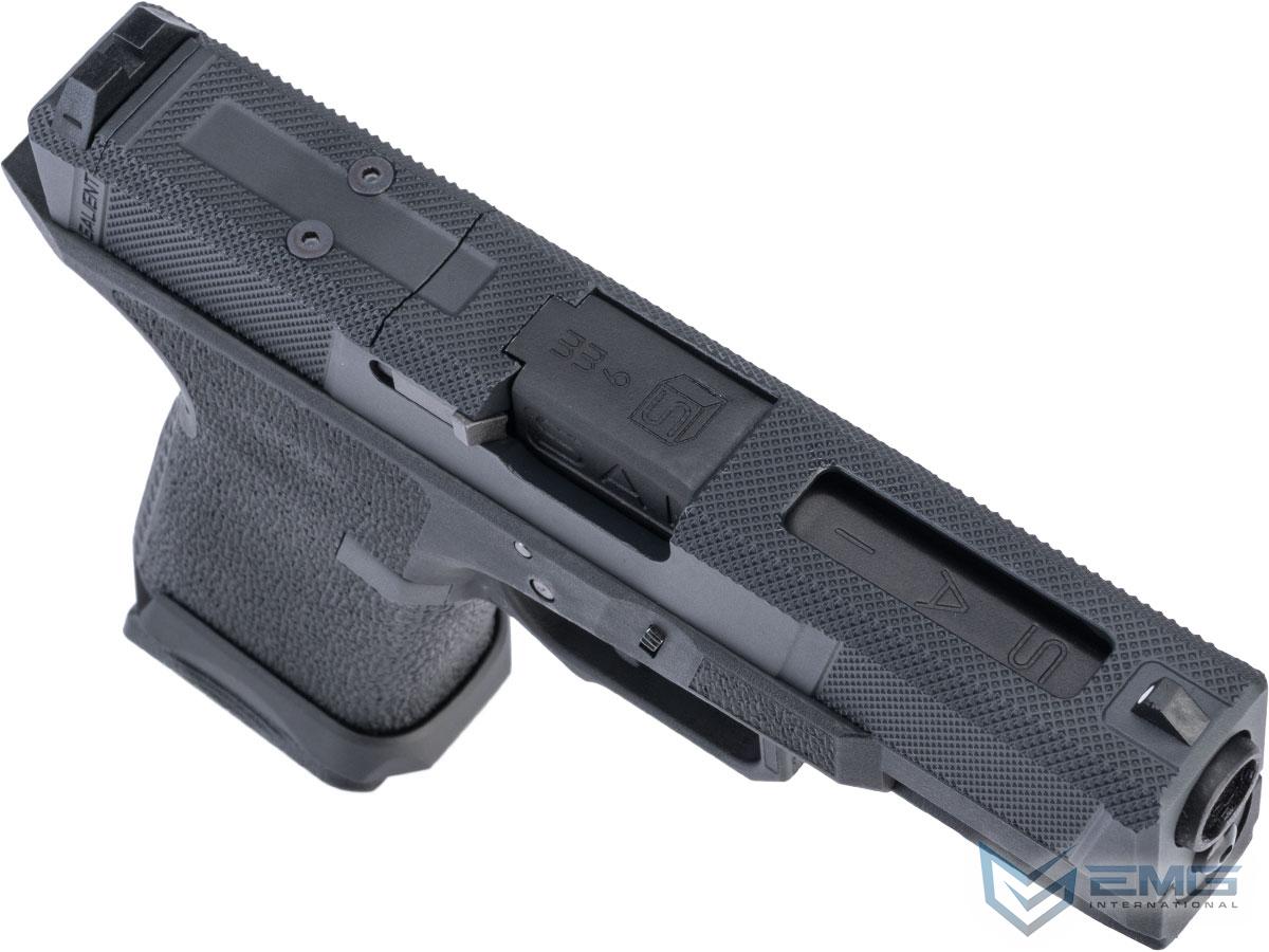 EMG has furthered their collaboration with Salient Arms International with the long awaited EMG BLU. The newest iteration to the BLU line of pistols features an updated brass backstrap and magazine release, mimic these same features of the real BLU. Designed closely with the geniuses at SAI, the EMG / SAI BLU is designed to be as close to the real thing as possible offering shooters and enthusiasts the most realistic training analog available. Featuring a durable polymer frame, machined aluminum slide and barrel assembly and brass backstraps and magazine release, the EMG / SAI BLU not only looks like its real deal cousin, it feels like it as well. Authentic rollmarks and branding top off the look, making it almost impossible to differentiate the 6mm version, from the 9mm version.