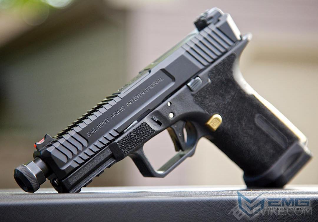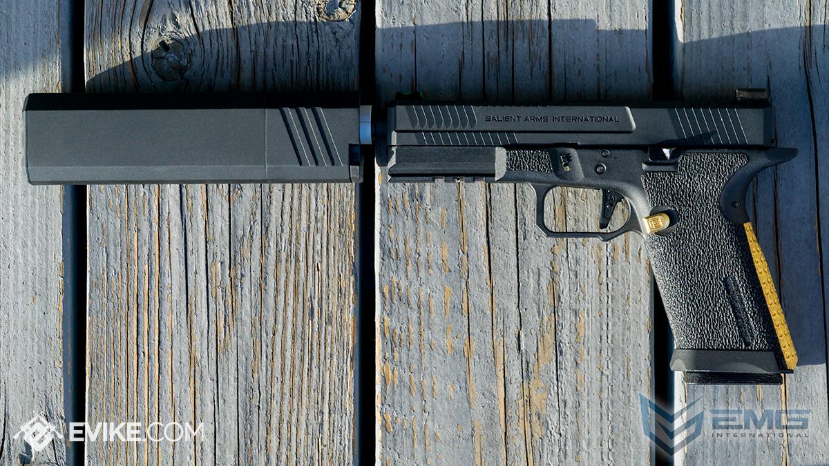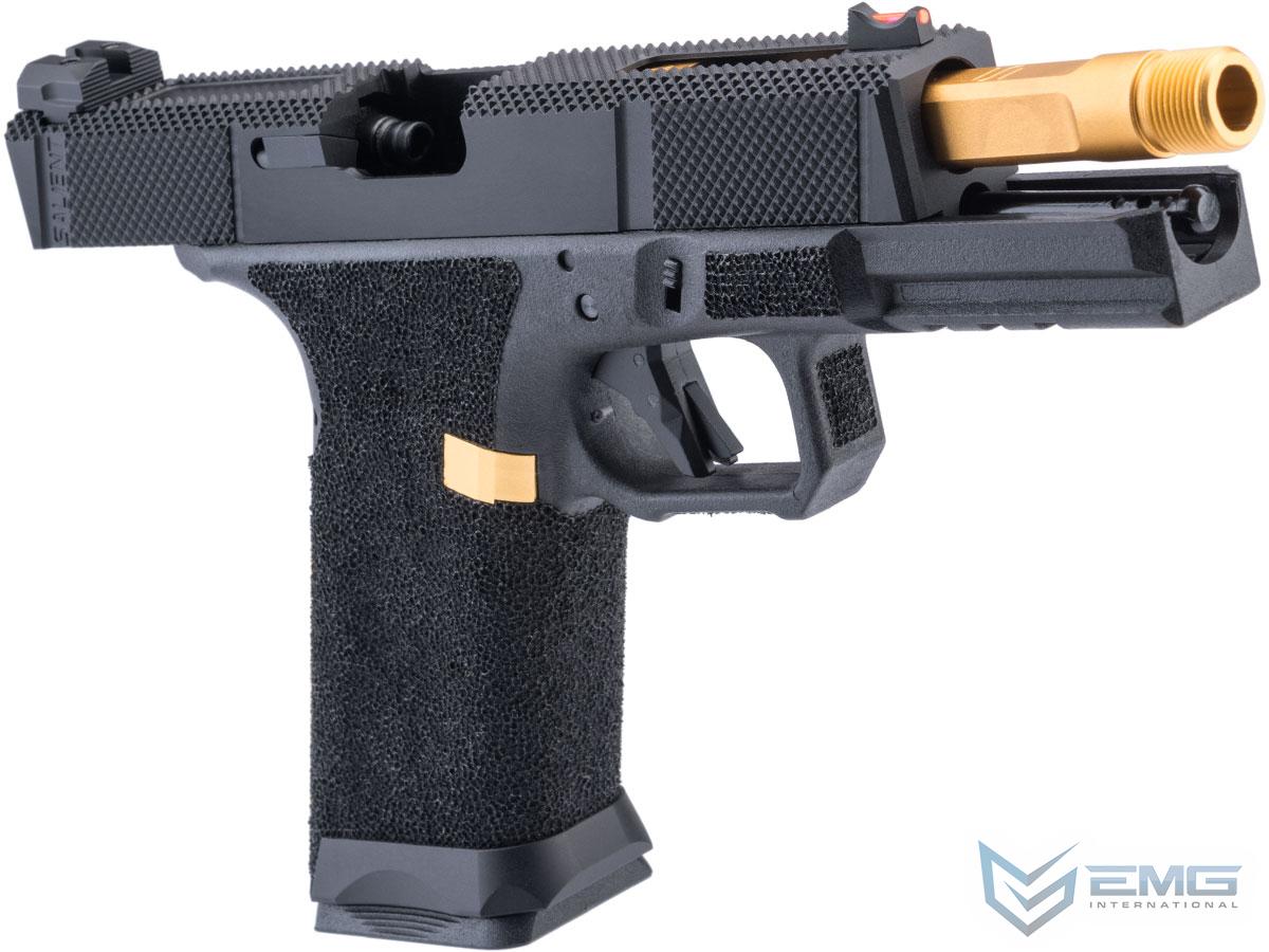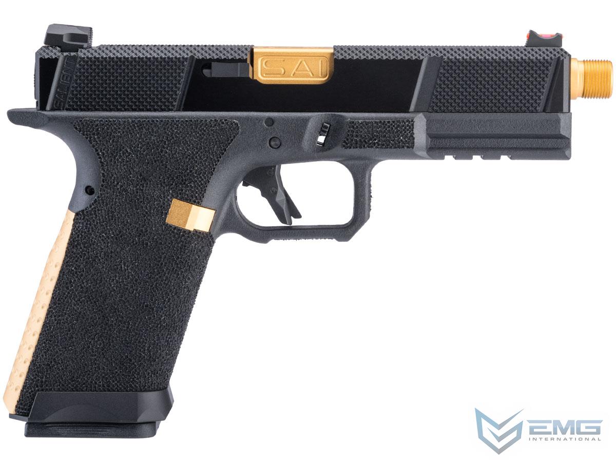 EMG has furthered their collaboration with Salient Arms International with the long awaited EMG BLU. The newest iteration to the BLU line of pistols features an updated brass backstrap and magazine release, mimic these same features of the real BLU. Designed closely with the geniuses at SAI, the EMG / SAI BLU is designed to be as close to the real thing as possible offering shooters and enthusiasts the most realistic training analog available. Featuring a durable polymer frame, machined aluminum slide and barrel assembly and brass backstraps and magazine release, the EMG / SAI BLU not only looks like its real deal cousin, it feels like it as well. Authentic rollmarks and branding top off the look, making it almost impossible to differentiate the 6mm version, from the 9mm version.