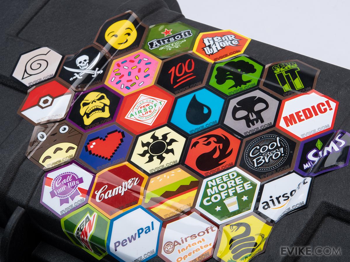 The Evike Hex Patches have become a popular way to customize your loadout and setup your very own player profile on your Velcro surfaces; but what if you want to deck out non-Velcro surfaces as well? Now you can stick our Hex vinyls anywhere with these high quality printed vinyl decals.