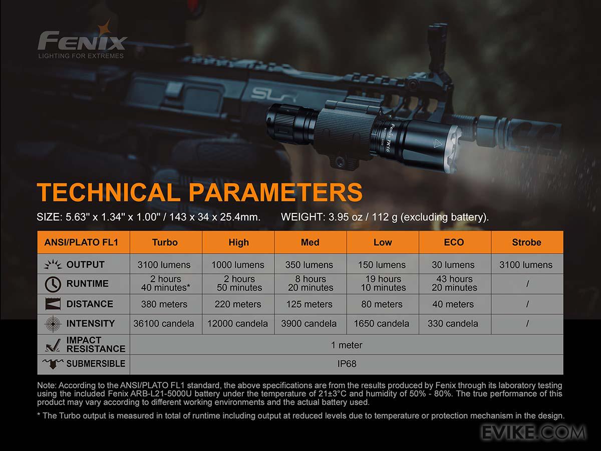• Includes 1x Fenix L21-5000U rechargeable 21700 Li-Ion battery