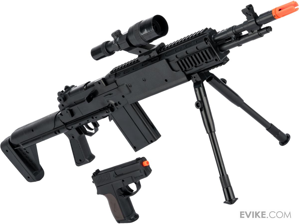 Package Includes: Rifle w/ 2x Magazines, Pistol, Mock Scope, Bipod, Laser