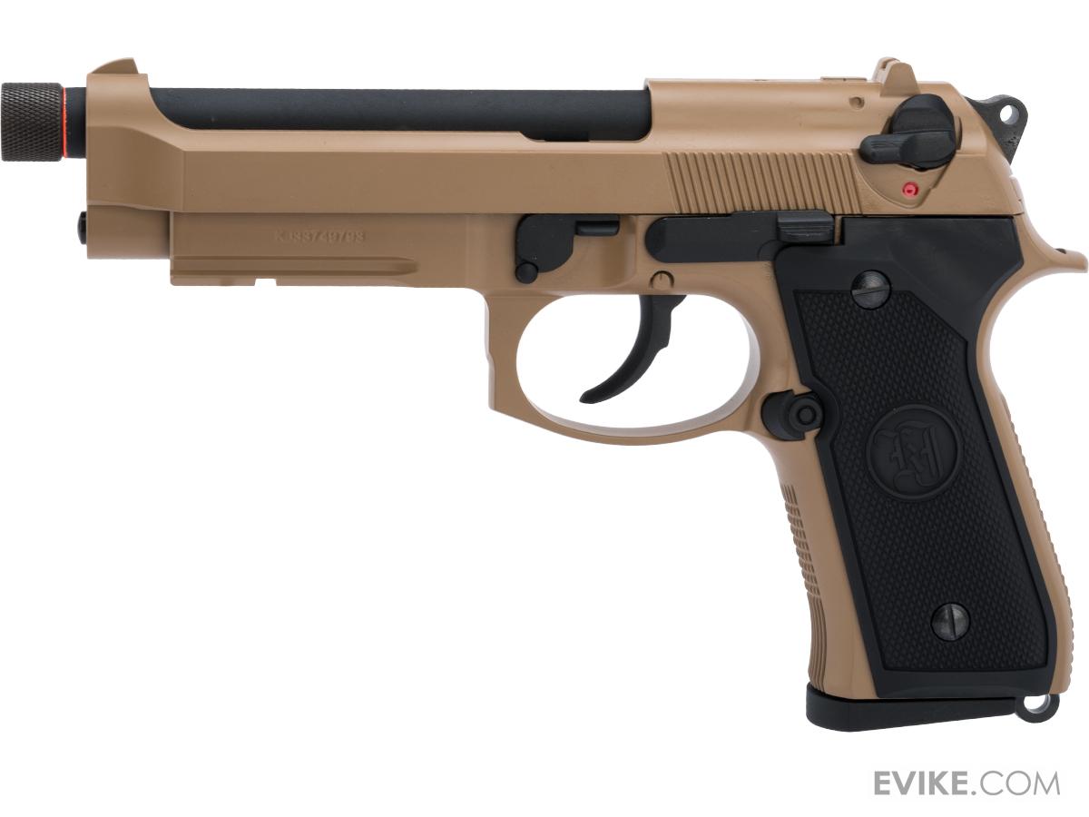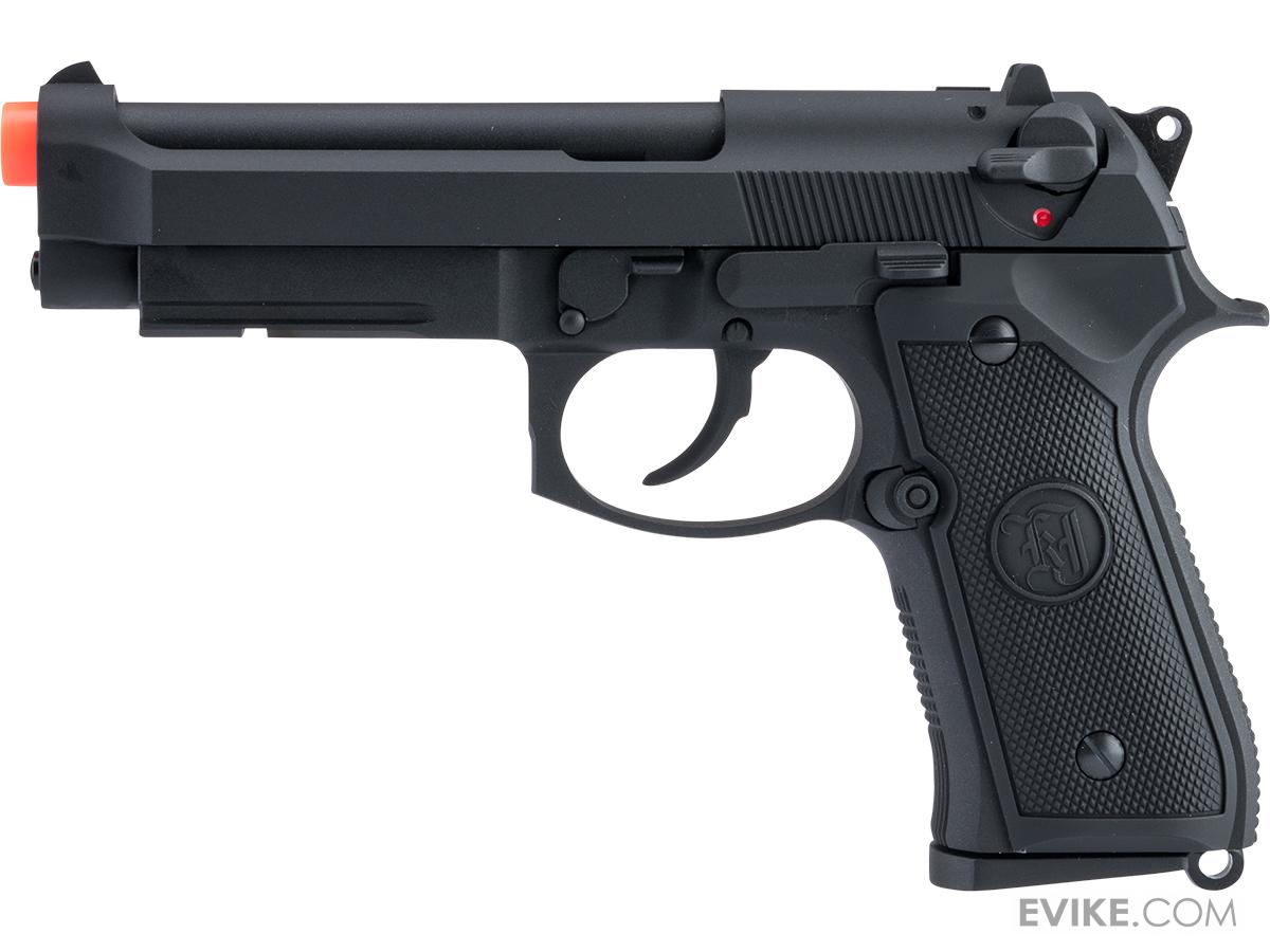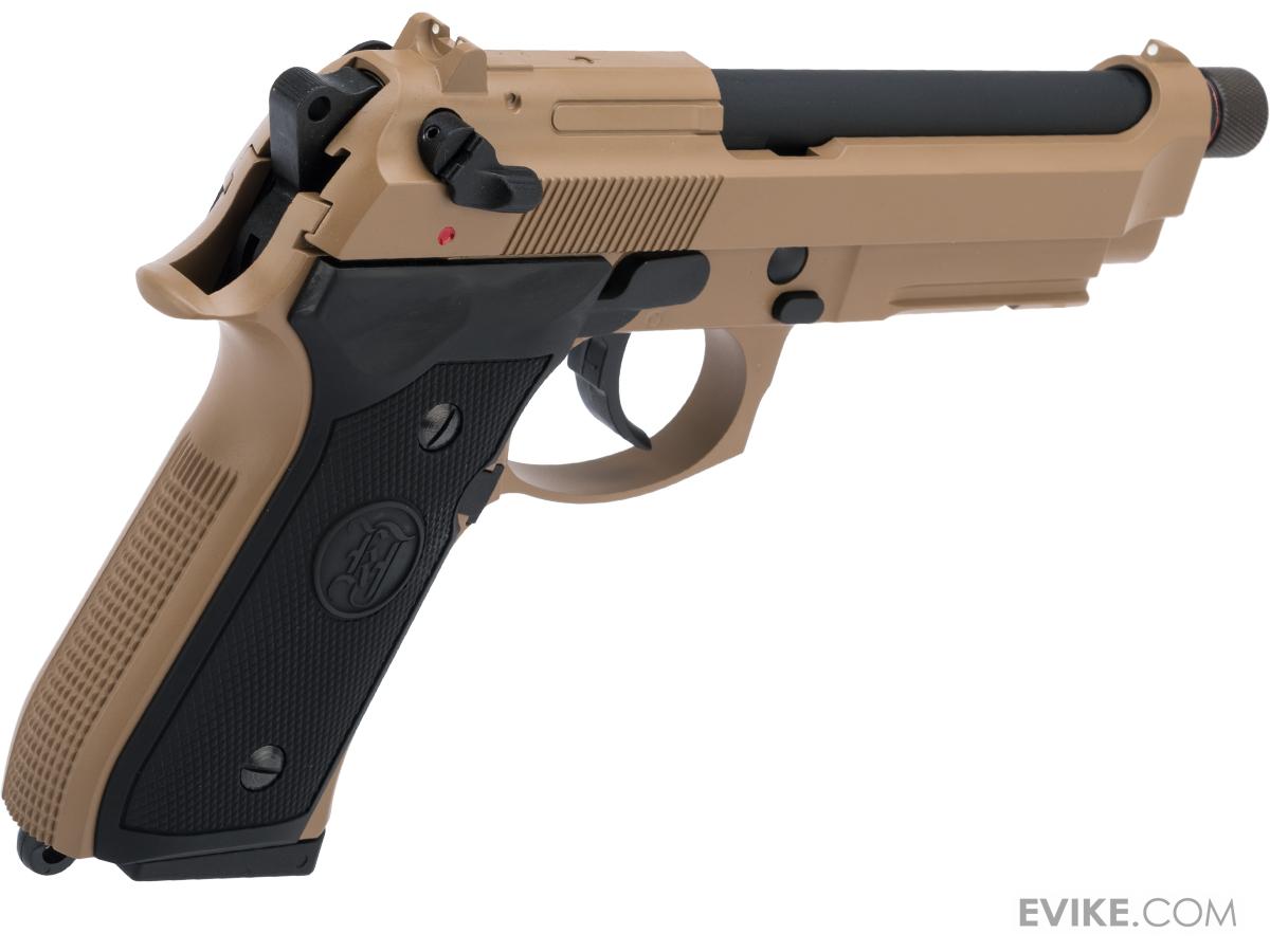- Includes ergonomic molded grips and standard M9 style checkered plastic grips