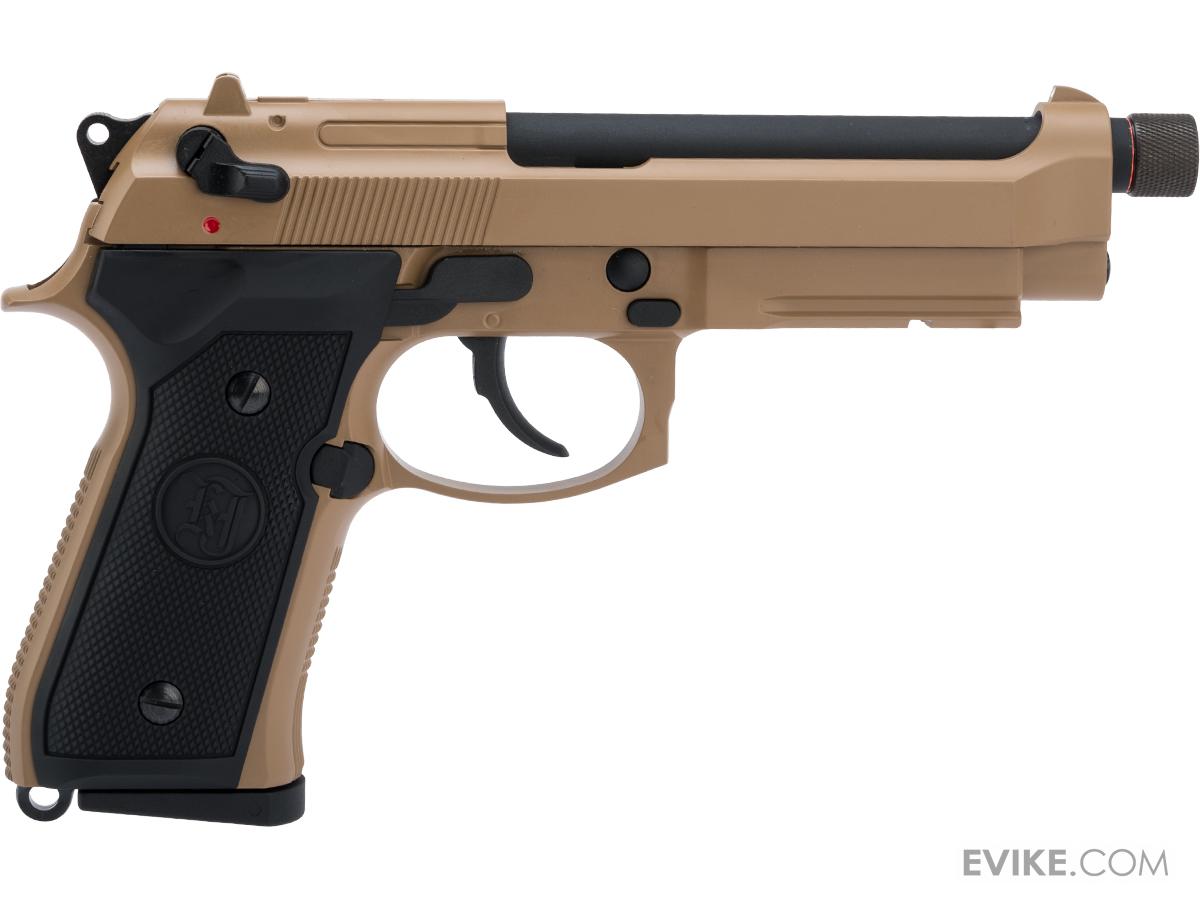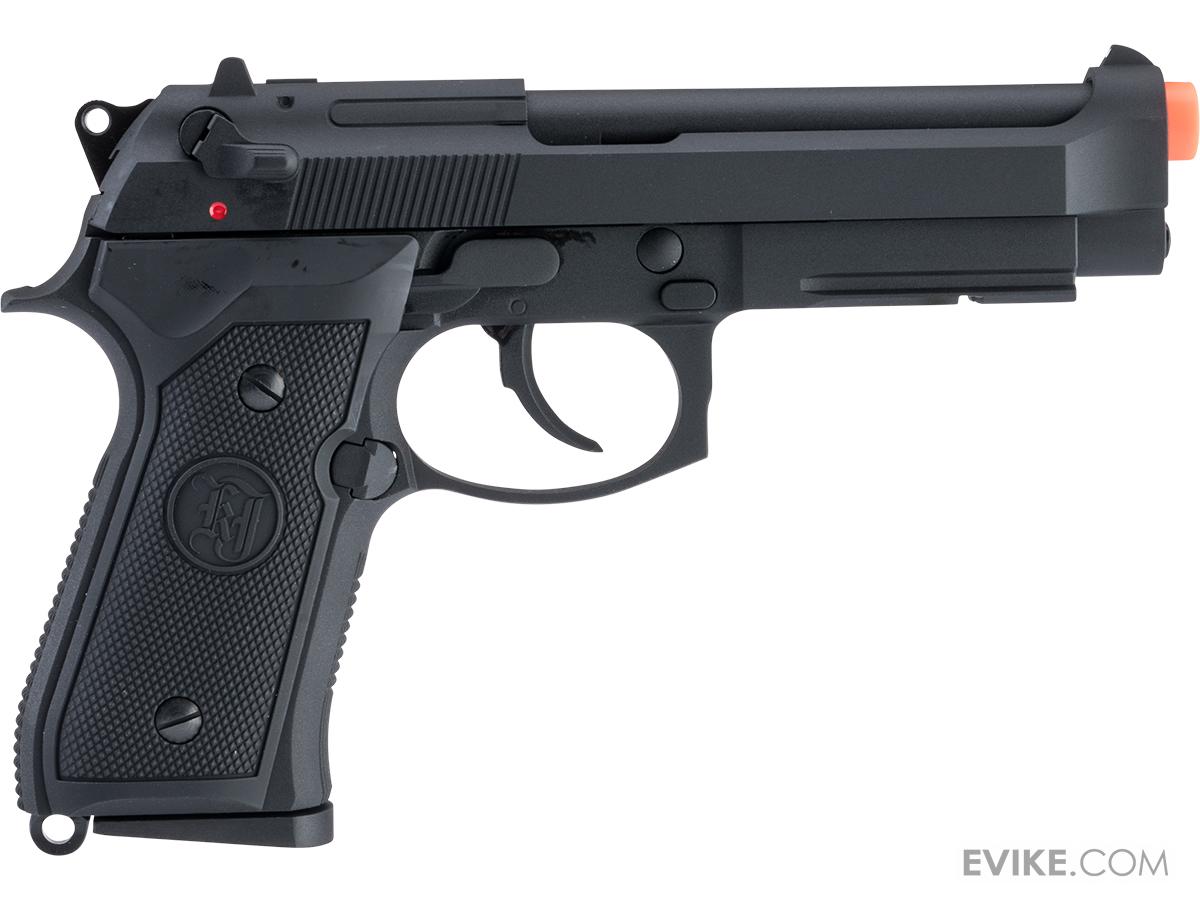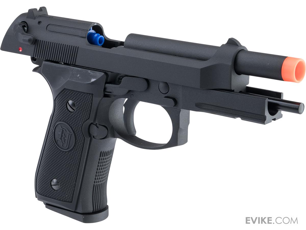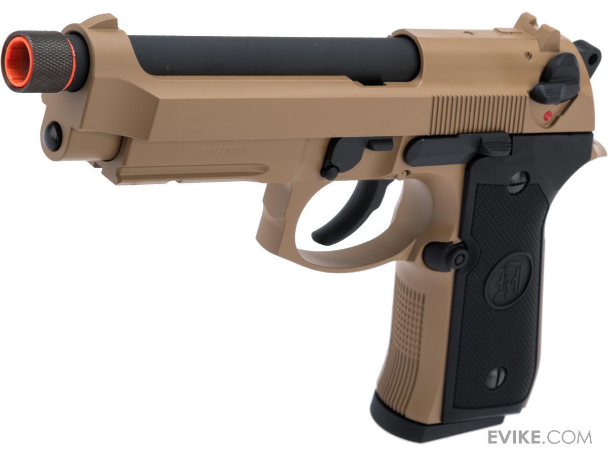 - Includes ergonomic molded grips and standard M9 style checkered plastic grips