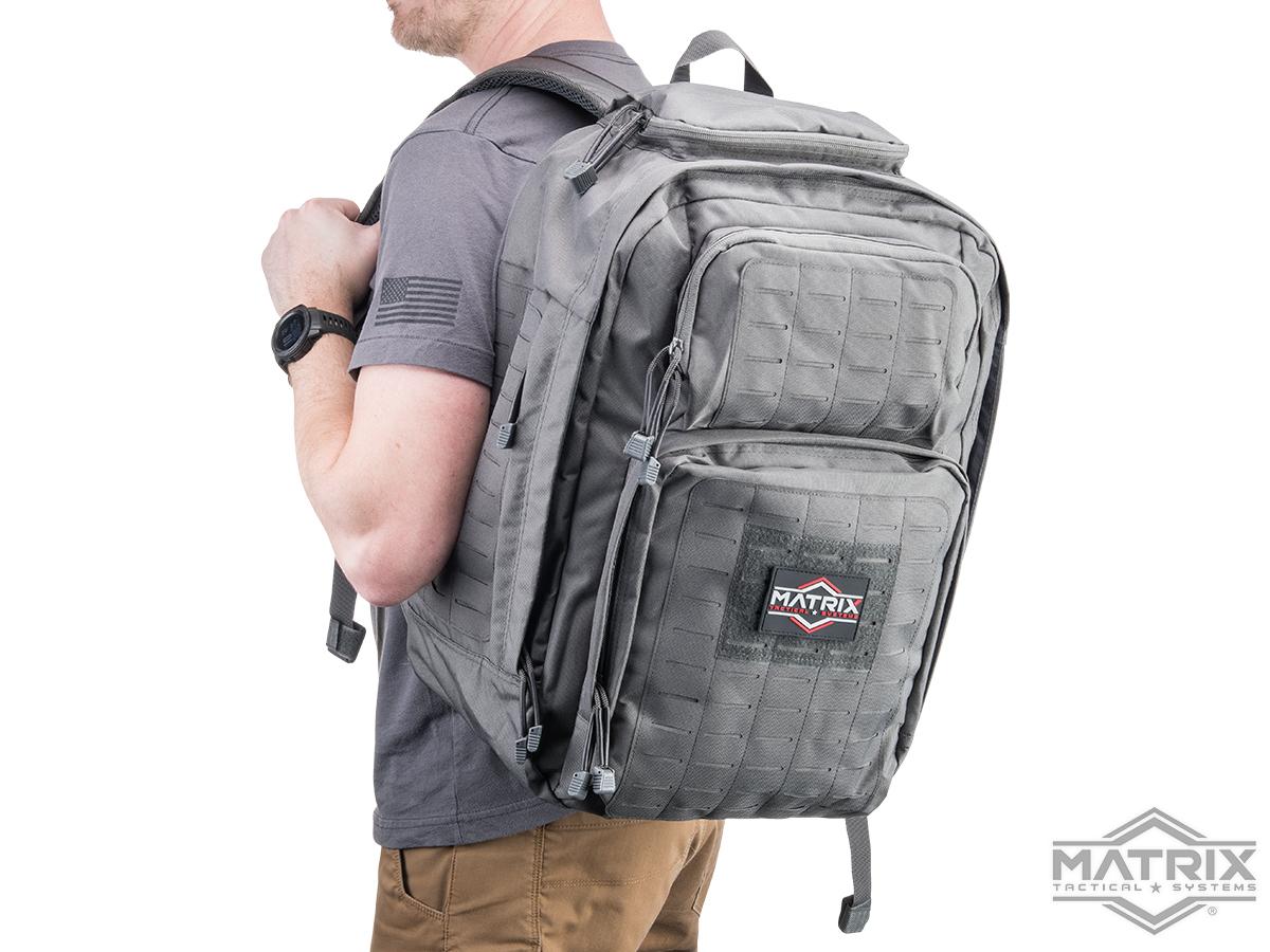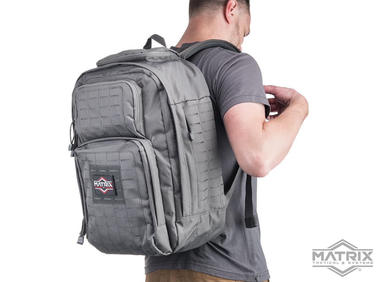 - Laser-cut MOLLE panels to allow for attaching extra pouches with minimal bulk
