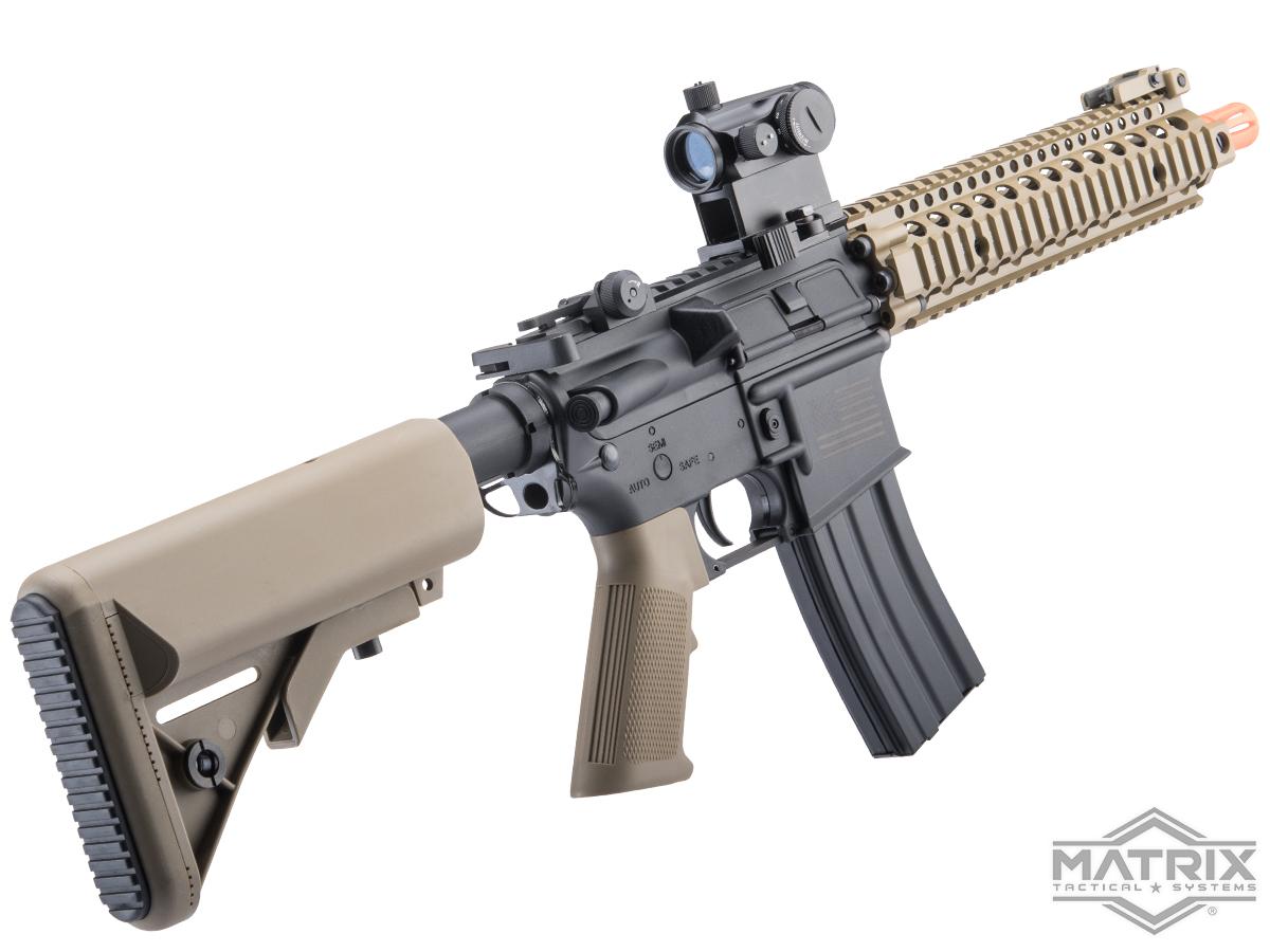 Package Includes: Gun, High Cap Magazine, 2x Spare BAMF Gen2 Mid-Cap Magazines, T1 style Red Dot Optic, 2x Matrix 11.1v LiPo Batteries, LiPo Balancing Smart Charger, LiPo Safe Charging Bag, Airsoft Safety Sack