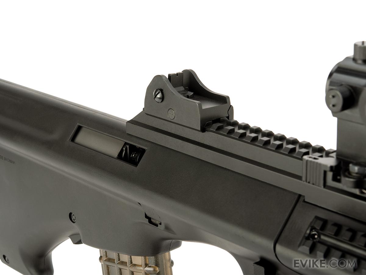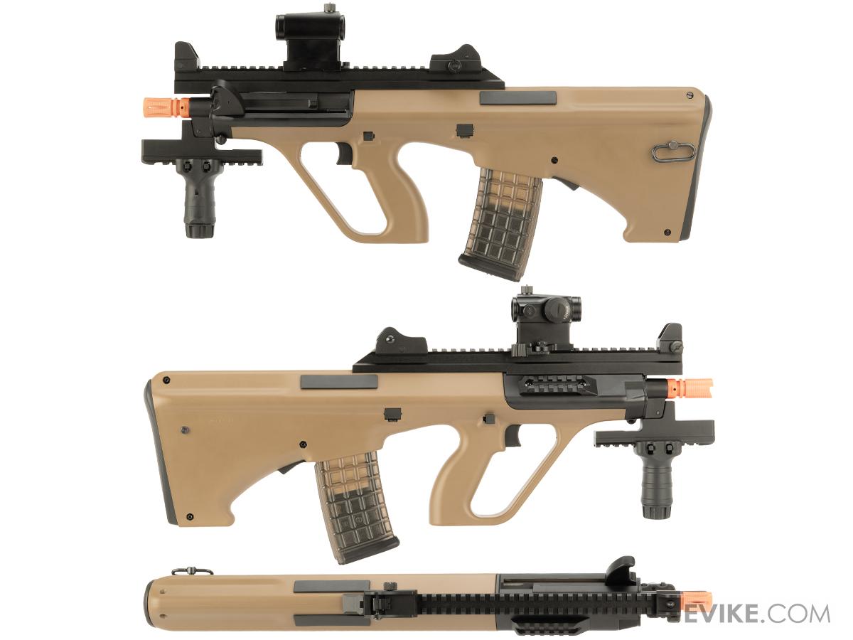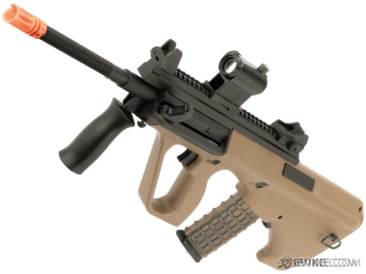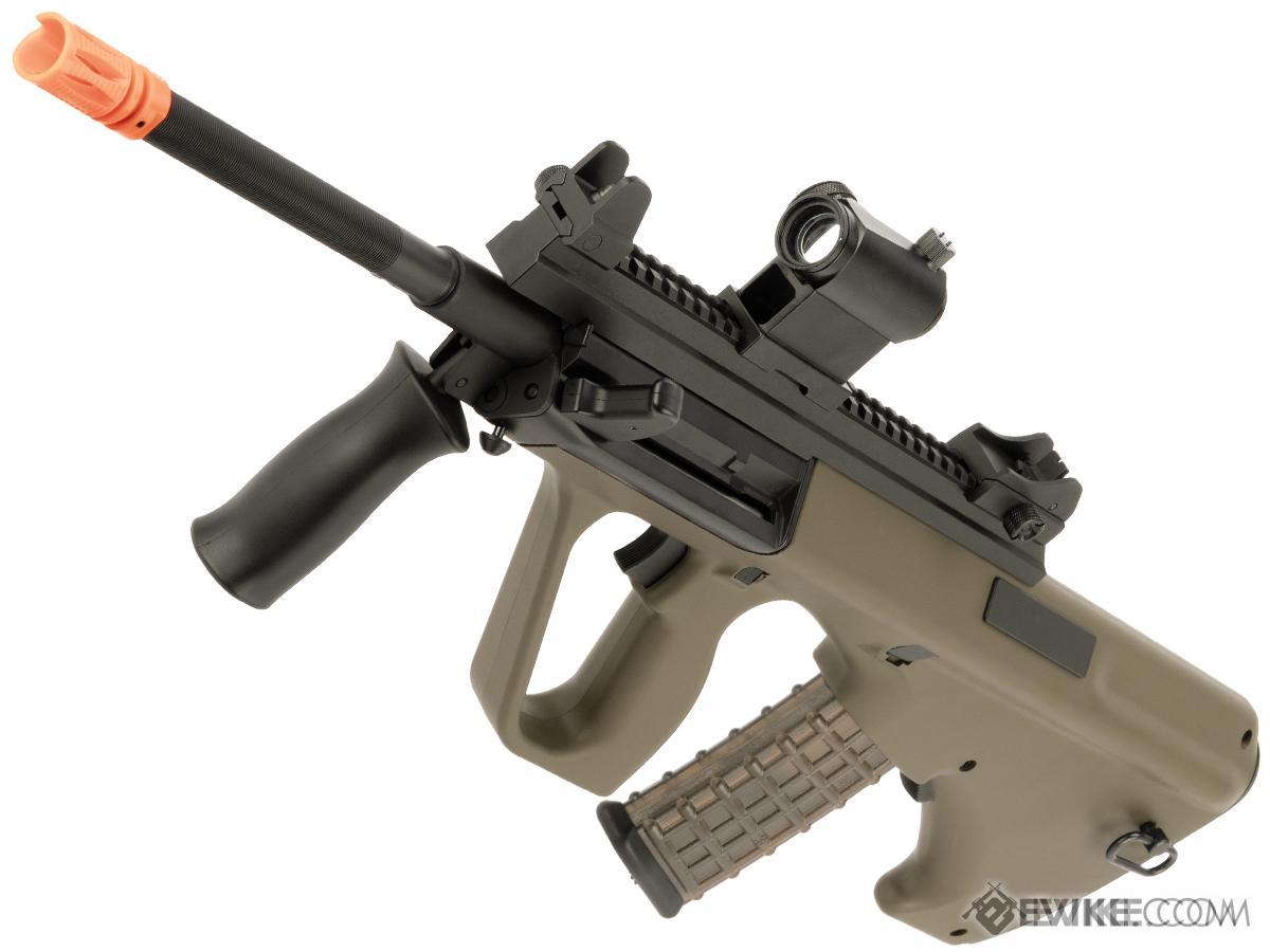 Its bullpup design which moves the core of the rifles action behind the trigger allows for the use of a full length rifle barrel in a weapon with the ergonomics of a sub-machine gun. Some other significant features include fully ambidextrous controls and reversible charging handle and shell ejection port allowing the rifle to be configured for both left and right handed shooters. The unique two stage trigger allows the user to fire in semi-auto and full-auto without needing to manipulate a selector switch; for semi-automatic fire, the operator will just pull the trigger half way and if fully-automatic fire was necessary, the operator needs to only pull the trigger all the way back.Chambered in the 5.56x45mm NATO cartridge for its ease of use and handling, the futuristic family of rifles in the AUG line can be quickly adapted to accommodate a wide variety of roles in the ever changing battlefield with just a quick swap of the barrel. The AUG is definitely a well-rounded combat weapon with a proven track record that can stand its own even with todays modern combat rifles.