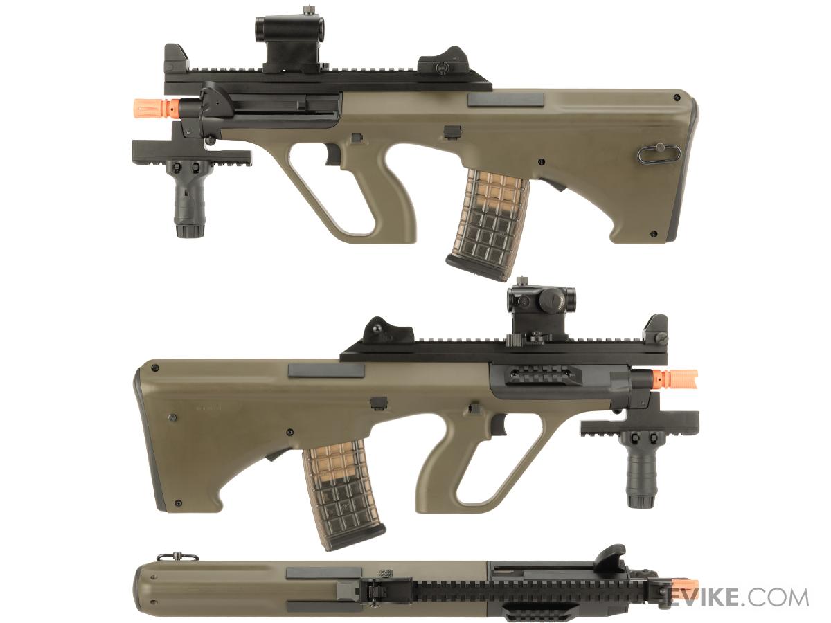 The AUG A3 is the next evolution of the AUG platform, featuring an M1913 compatible top rail and the tried and true quick-change barrel system; one could outfit their rifle for any mission one may see themself in.