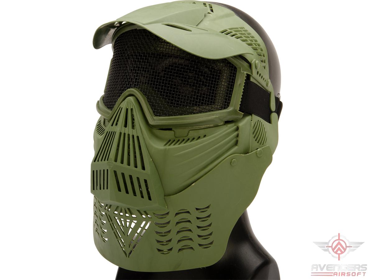 Avengers Mesh Transformer Modular Mask w/ Visor & Neck Guard (Color: OD Green)